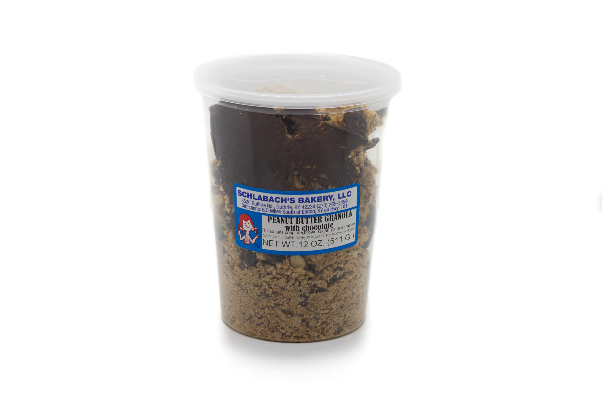 Ingredients: rolled oats, crisp rice, brown sugar, graham crackers, butter, peanut butter, honey, nuts, cocoa, soy lecithin, soda, salt